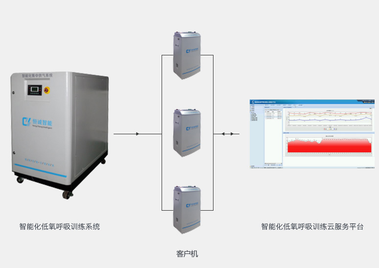 智能化低氧體能訓(xùn)練系統(tǒng)主要由智能化低氧發(fā)生系統(tǒng)、智能運動監(jiān)測模塊、補(bǔ)償式呼吸面罩、移動訓(xùn)練指導(dǎo)單元及分布式管理平臺五部分組成。系統(tǒng)模擬高原低氧環(huán)境進(jìn)行訓(xùn)練,有效的利用高原訓(xùn)練的優(yōu)勢而避開其弊端,為運動員提供了常壓狀態(tài)下的低氧訓(xùn)練設(shè)備和訓(xùn)練模式。